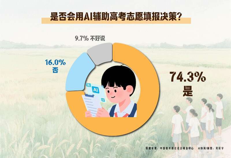 2025年高考志愿填报正在进行中,AI成为不少家庭志愿填报的新晋“智囊团”。上周,中国青年报社社会调查中心联合问卷网(wenjuan.com),对1167名受访者进行的一项调查显示,在家有考生的受访者中,74.3%的受访者会用AI辅助高考志愿填报。47.6%的受访者认为,当前AI工具在辅助填报高考志愿时还无法量化个性化需求,52.3%的受访者认为AI志愿填报工具应严格限制个人信息收集范围。