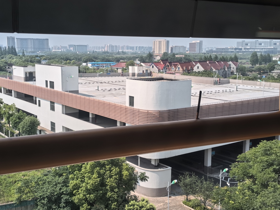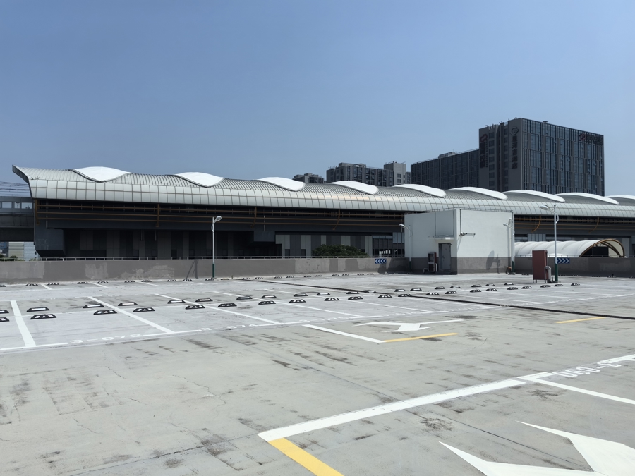 公交枢纽三楼的P+R停车库,远处即为11号线康新公路站。