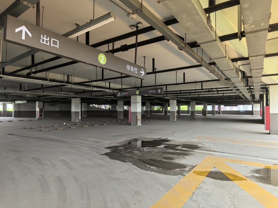车位上厚厚一层灰,但闸机亮着灯