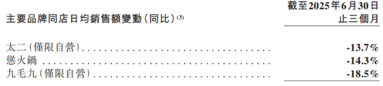 证券之星了解到,截至今年7月,公司共调改64家门店,其中约三分之一门店大改,2025年内将完成150家门店的调整,2026年完成太二门店的全面调整。从已调改的门店经营表现看,今年二季度,太二及怂火锅的同店日均销售额同比下降幅度较第一季度收窄,太二品牌在今年4-6月份同店日均销售额同比降幅逐月收窄。