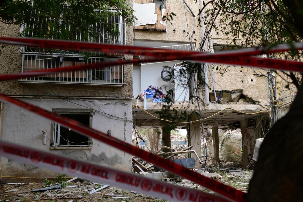这是6月22日在以色列中部特拉维夫拍摄的在导弹袭击中被毁的建筑。新华社发(托默·诺伊贝格摄/基尼图片社)