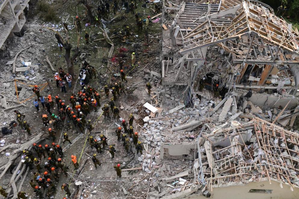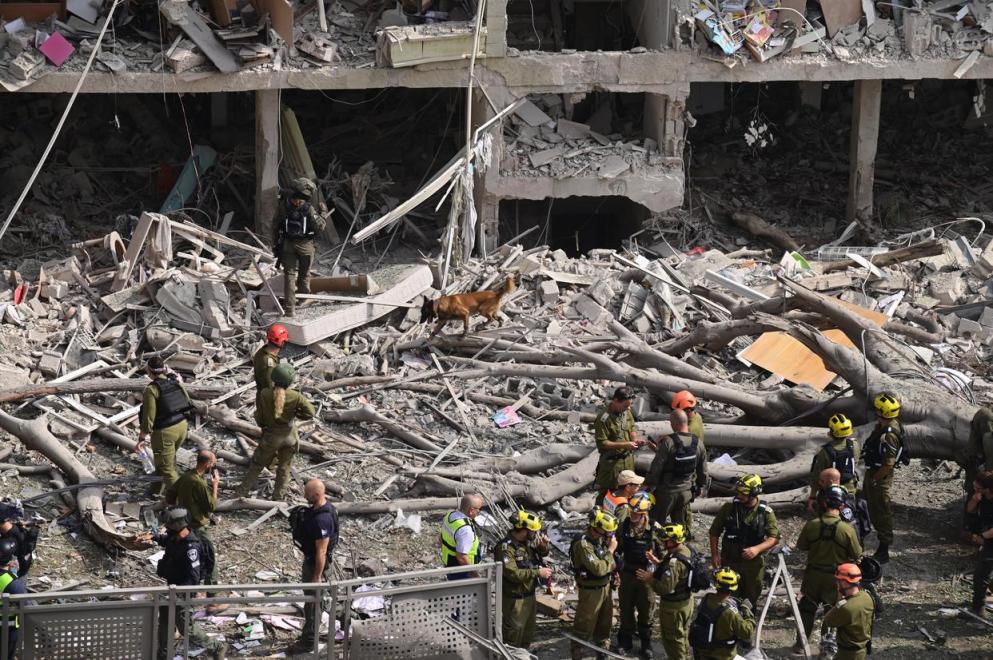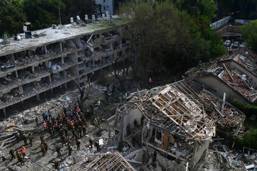 6月22日,在以色列中部特拉维夫的导弹袭击现场,应急和救援人员开展工作。新华社发(托默·诺伊贝格摄/基尼图片社)